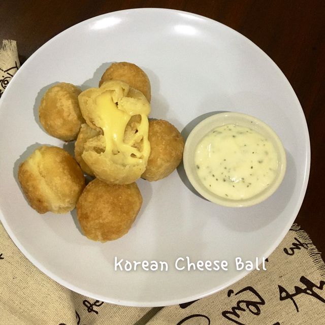 Cheese ball khas Korea biasanya hadir di banyak street food stall atau restoran ayam goreng Korea.